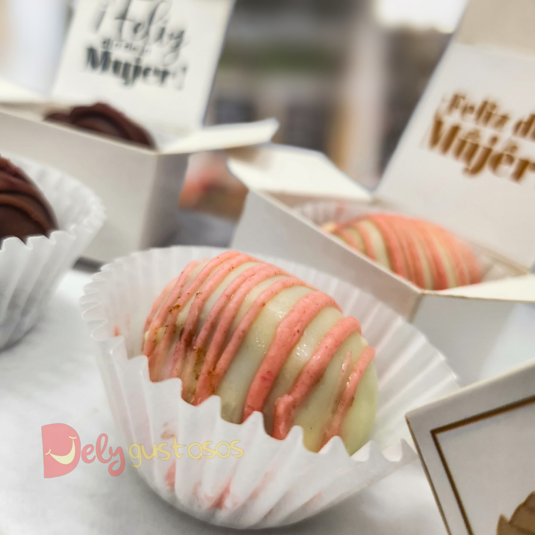 Trufas de Brownie cubierta de chocolate oscuro, chocolate blanco y red velvet.